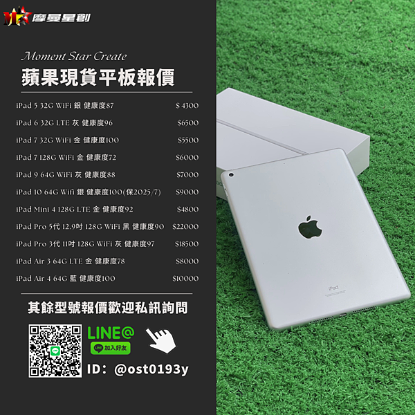 我們提供多款 高CP值二手 iPad,價格透明、公道實惠,以下是最新的報價: